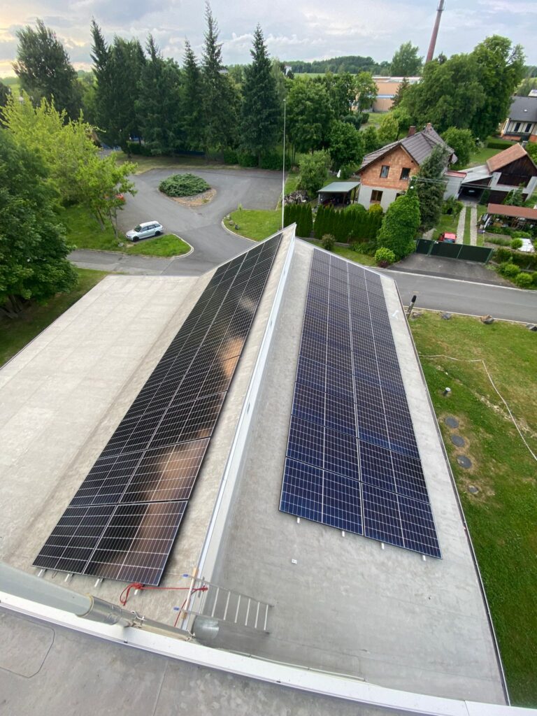 FVE na střeše hasičské zbrojnice, která však slouží pro spotřebu elektřiny v 200 m vzdáleném zámku