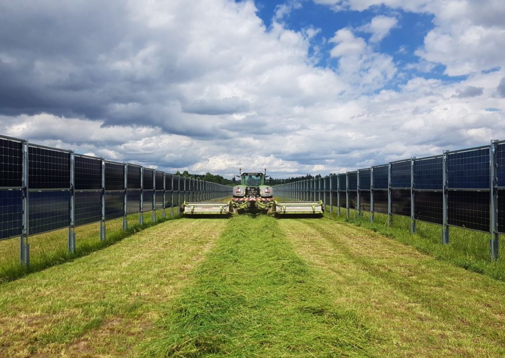 Jednou z možností využití fotovoltaiky a neznehodnocení zemědělské půdy jsou tzv. bifaciální moduly. Narozdíl od „klasických“, které známe z okolí našich měst, s horizontální polohou a orientací na jih, je poloha bifaciálních panelů vertikální (tvoří tedy jakousi stěnu). Tyto moduly jsou, jak jejich název napovídá, oboustranné. Jejich orientace je východo – západní, nejvíce elektřiny proto vyrobí ráno a v podvečer. Čili mohou dorovnávat potřebu výroby energie jako komplement s klasickými panely, které zase nejvíce vyrobí okolo poledních hodin.