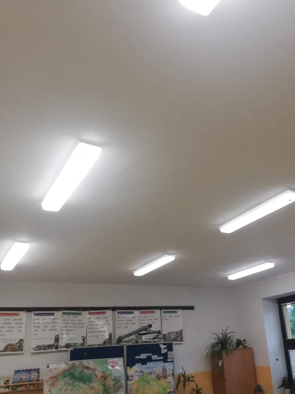 „Ve škole a školce nyní máme moderní LED osvětlení, které lze ovládat bezdrátovými, bezbateriovými tlačítky od katedry učitele. V učebnách lze navolit několik přednastavených scén, lze plynule regulovat světelný výkon 1-100% a lze nastavit regulaci dle denního světla pro každou řadu. Přednostmi tohoto nového osvětlení je okamžitý start a bez nepříjemného blikání,“ raduje se Eva Peštová, starostka obce.