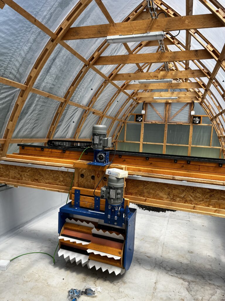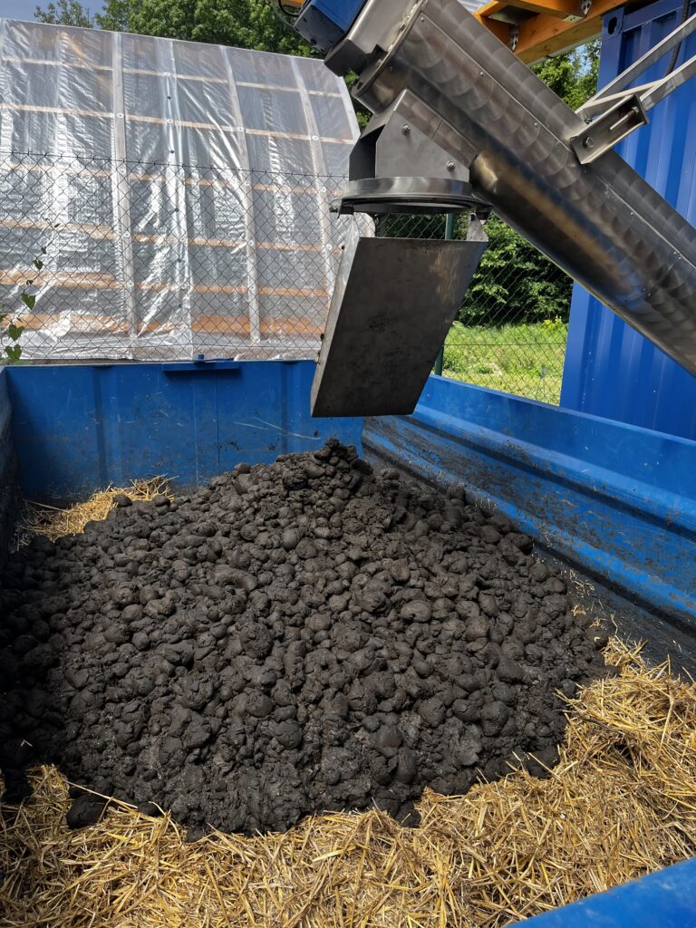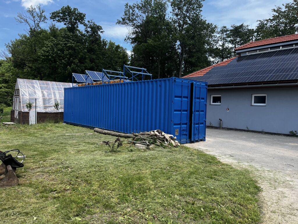 Přelom nastal v polovině roku 2024, kdy obec vlastními silami postavila solární sušárnu kalů v podobě unikátní dřevostavby. Tato sušárna je modifikací průmyslových řešení, ale je přizpůsobená potřebám malé obce. Klíčovou inovací je využití odpadního tepla z biomilíře, kam se ukládá bioodpad z veřejných prostor. Teplem z rozkladného procesu uvnitř biomilíře se ohřívá voda, která následně vytápí podlahový systém sušárny.
