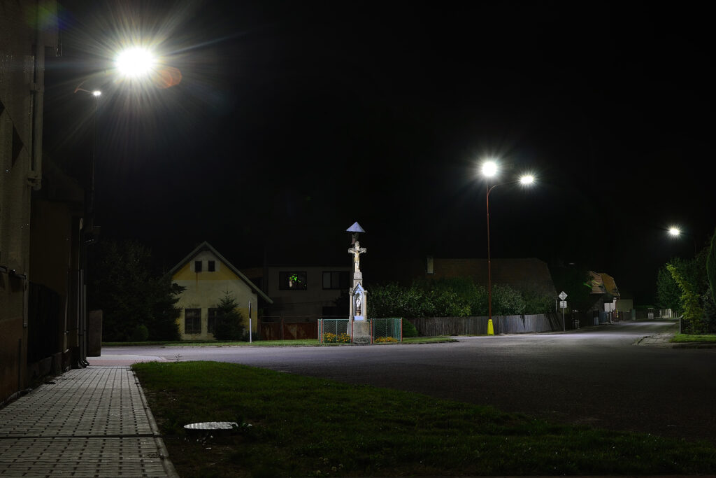 Určitou nevýhodou LED osvětlení je produkce světelného sloupce. LED svítí „tam kam má“, nikoliv do zahrad a ložnic v okolí. To je samozřejmě výhoda, jenomže na druhou stranu znamená nutnost přidání světelných bodů v případě, kdy chceme ponechat původní komfort osvětlení obce, nebo například splnit podmínky dotačních titulů.