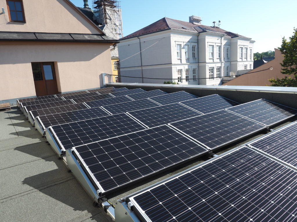 Distribuční síť tvoří i fotovoltaické panely na střeše Kulturního domu Šatlava