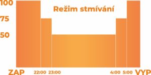 2) Dochází k útlumu intenzit osvětlení v době nižší intenzity dopravy a pohybu chodců.